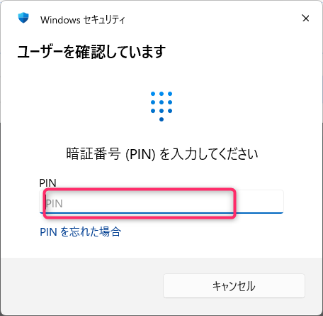 (パスキー認証が表示されますので都度PIN を入力します。)