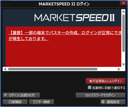以上により、Chromeからは楽天証券WEBにパスキー認証でログインできますが、マーケットスピード2からはパスキー認証によるログインはできません。