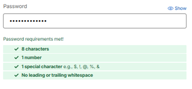 なお、パスワードについては、入力時に以下のように規則が示されますので、適合するように指定してください。