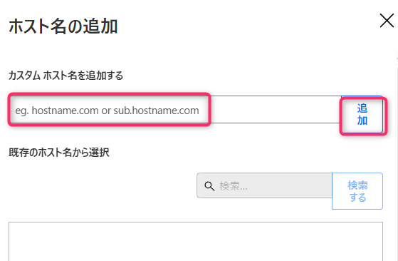 「カスタムホスト名を追加する」欄にホスト名を入力します。