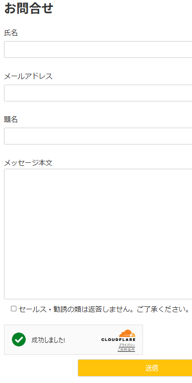 以上で、Contact Form 7にCloudflare Turnstileが実装されました。