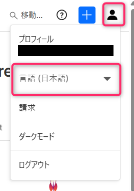 ダッシュボードの表記が英語なので、日本語に変更します。