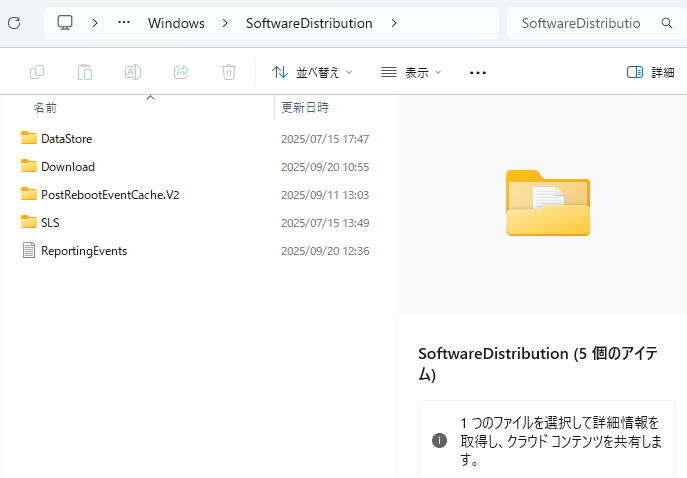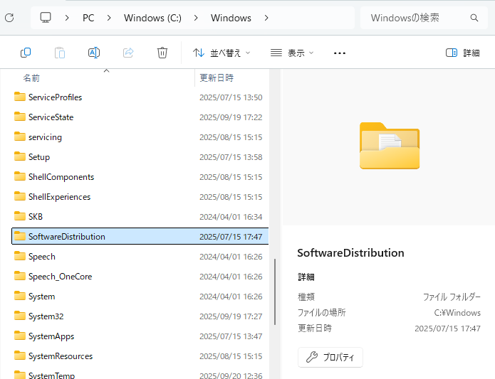 【対処作業1】SoftwareDistribution内のファイルを削除