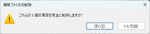 削除警告に「はい(Y)」と応答し削除作業を進めます。
