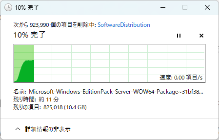 以上で、【対処作業1】SoftwareDistribution内のファイルを削除作業が完了しました。