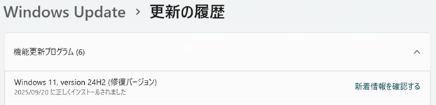 Windows11,version 24H2(修復バージョン)欄で「正しくインストールされました」となっていればOKです。