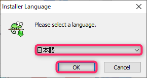 すると、Installer Languageダイアログが表示され、Please select a language.と言語選択を求めてきます。