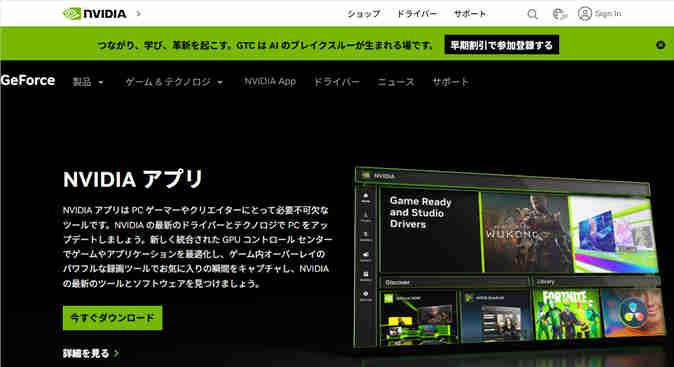 NVIDIAアプリをインストールするため、以下のURLにアクセスし、NVIDIAアプリを「今すぐインストール」ボタンを押してダウンロードします。