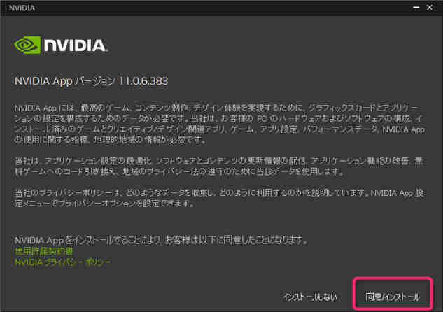 このアイコンをダブルクリックし、NVIDIAアプリをインストールします。
